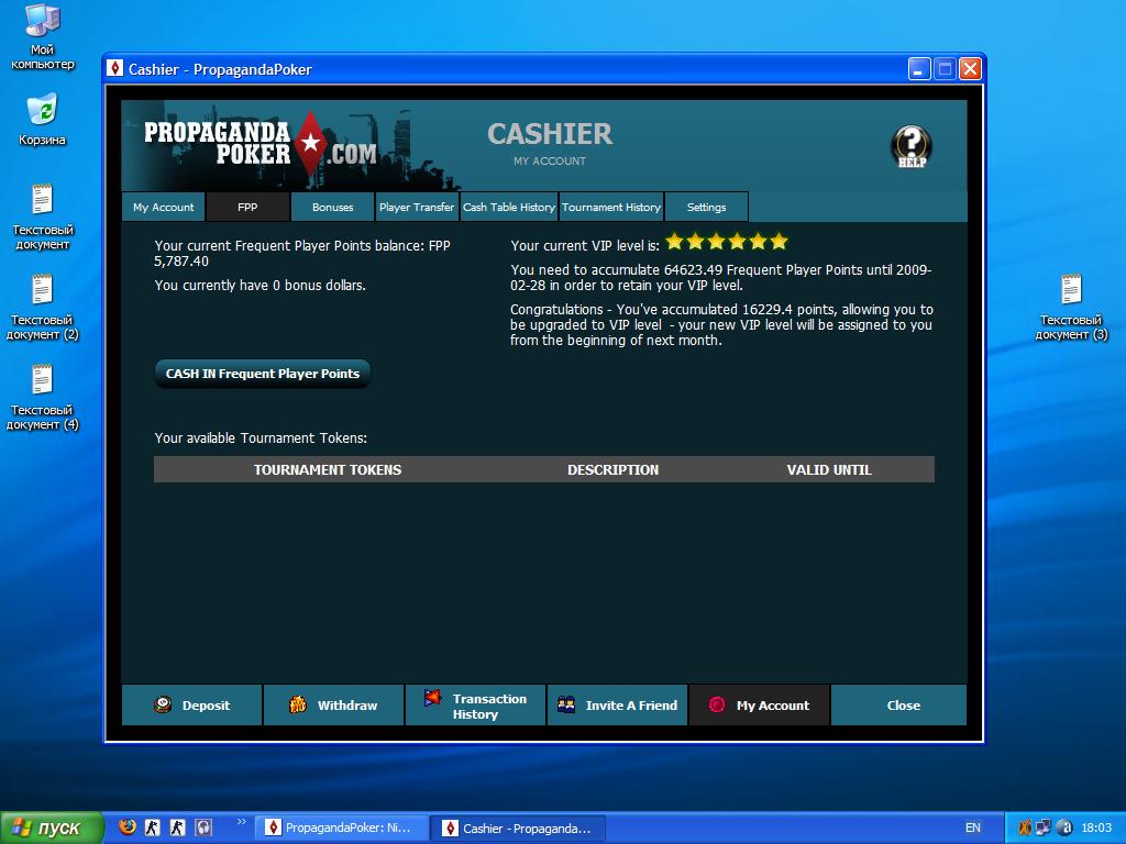 Я играю на пропаганде покере только тут за 10к очков 100$ дают и РБ я в месяц 30к очков не напрягаясь делать скоро буду у меня вип 6 самый последний статус очки летят вообще я в день делаю не меньше 1к очков . На покер старс РБ норм