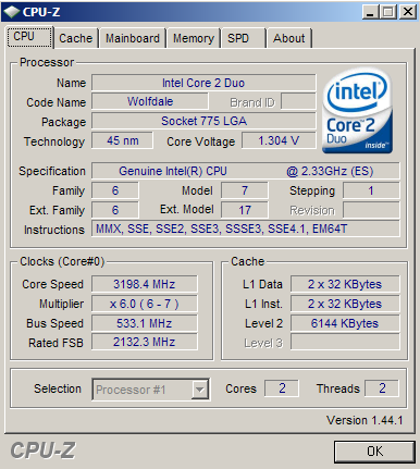 Процессор Core 2 Duo E7200 (2.53 ГГц) на 45 нм ядре Wolfdale с 3 Мб кэша второго уровня нам хорошо знаком. Он будет официально представлен 11 мая текущего года, оптовая цена составит $133. На тот момент он будет самым дешёвым 45 нм процессором семейства Core 2 Duo в настольном сегменте, а потому внимание к нему со стороны оверклокеров будет особенно высоким. Тем более, что наличие 1066 МГц шины обеспечит этому процессору довольно высокий номинальный множитель 9.5х, в отдельных случаях облегчающий разгон.