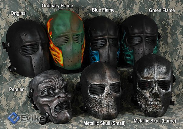 медленно но уверенно выхожу на уровень вот таких вот масок. Естественно качество будет похуже, сейчас ищу где бы взять пейнтбольную сетку на глаза, ну и следующая маску уже будет по форме из этой серии ( та что зелененькая), Крепление на буйну голову тоже усовершенствовано, на следующей игре покажу. маска держится на голове почти не касаясь лица и откидывается вверх
